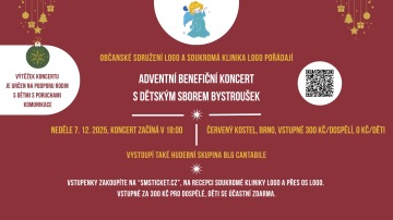Přijměte srdečné pozvání na Adventní benefiční koncert, který pořádá Občanské sdružení Logo, z.s., ve spolupráci se Soukromou klinikou LOGO s.r.o. Přijďte si v neděli 7. 12. poslechnout dětský sbor do Červeného kostela v Brně a podpořit dobrou věc.