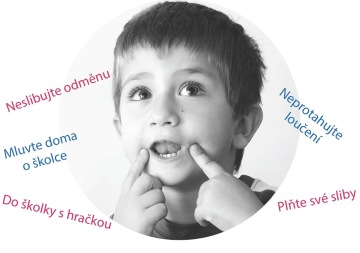 K překonání zábran z nového prostředí často pomůže nějaká drobnost, která připomíná domov a blízké, třeba jen obyčejný kamínek, plyšák, oblíbená hračka nebo maminčin šátek. V této době také dítě vyžaduje nadměrné projevy lásky. Neustále ho ubezpečujte o tom, že ho máte rádi, i když jste ho dali do školky. Až si dítě zvykne, samo přestane tyto projevy vyžadovat.
