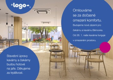 Velmi si vážíme Vaší trpělivosti a věříme, že budoucí větší kapacita a lepší odhlučnění kavárny přispějí k Vašemu většímu pohodlí.