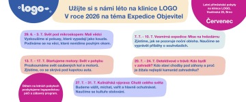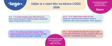 Vaše děti můžete přihlásit i na letní pobyt s klinikou LOGO v Blansku a v Praze. Témata "Léto 2026" pro Blansko a Prahu připravujeme. Sledujte naše webové stránky, ať Vám letní dobrodružství neutečou.